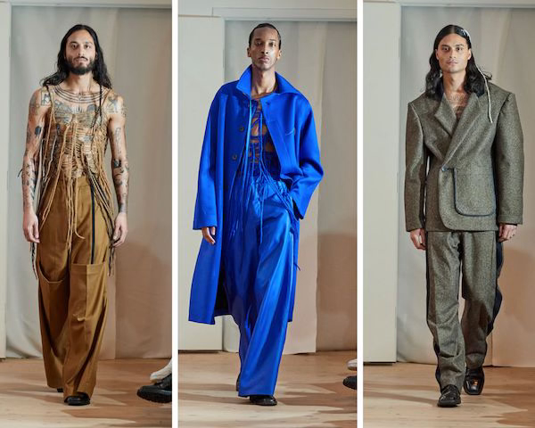 In this Autumn/Winter 23 collection he seemed to have just done that. Some looks play with the element of testing how far a man can be considered a man with baring just enough leg and adding garters made for men. Some looks played with shapes, testing traditional tailored suits, and skirts. Latimmier kept the colors direct to focus on the textiles used and how they were used.